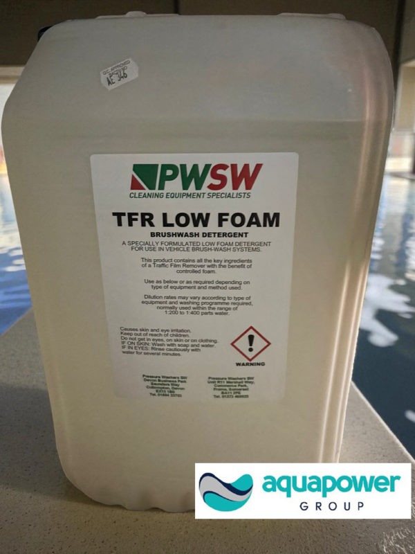 Specially formulated brushwash detergent for use in vehicle brush-wash systems. All the key ingedients to effectively remove traffic film with the added bonus of low foam.
